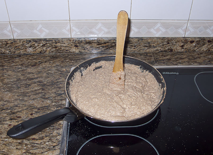 - Seguimos removiendo hasta que la masa esté a nuestro gusto o como ya hemos comentado al principio cuando la cuchara se sostenga en vertical dentro de la masa.