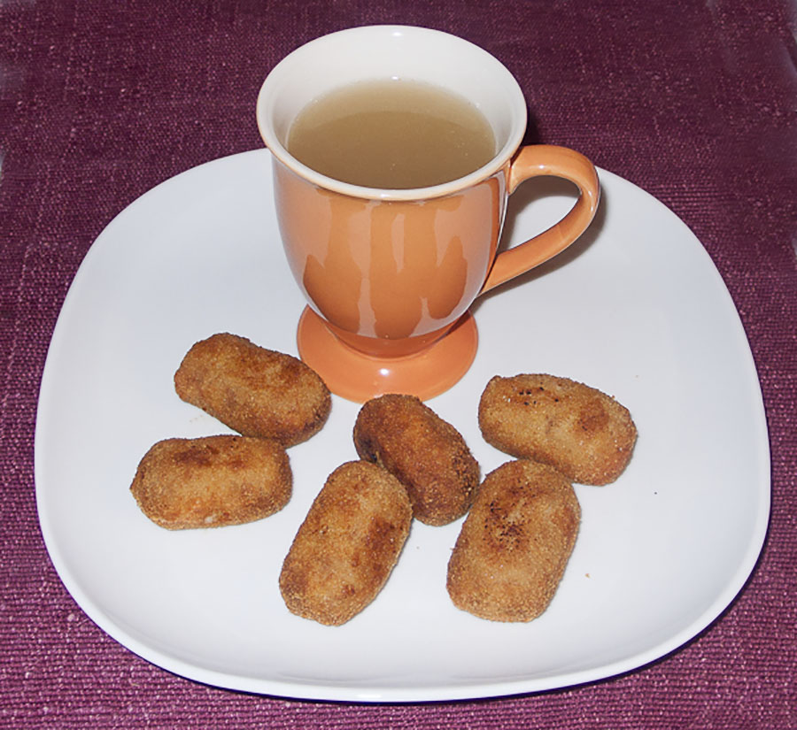 Una de esas cenas que nos apetece tomar en invierno, es una ración de croquetas de cocido caseras acompañadas del caldo que guisó la carne de las croquetas una vez desgrasado y clarificado. El caldo también los congelamos en raciones para así poder disponer de él en cualquier momento.
