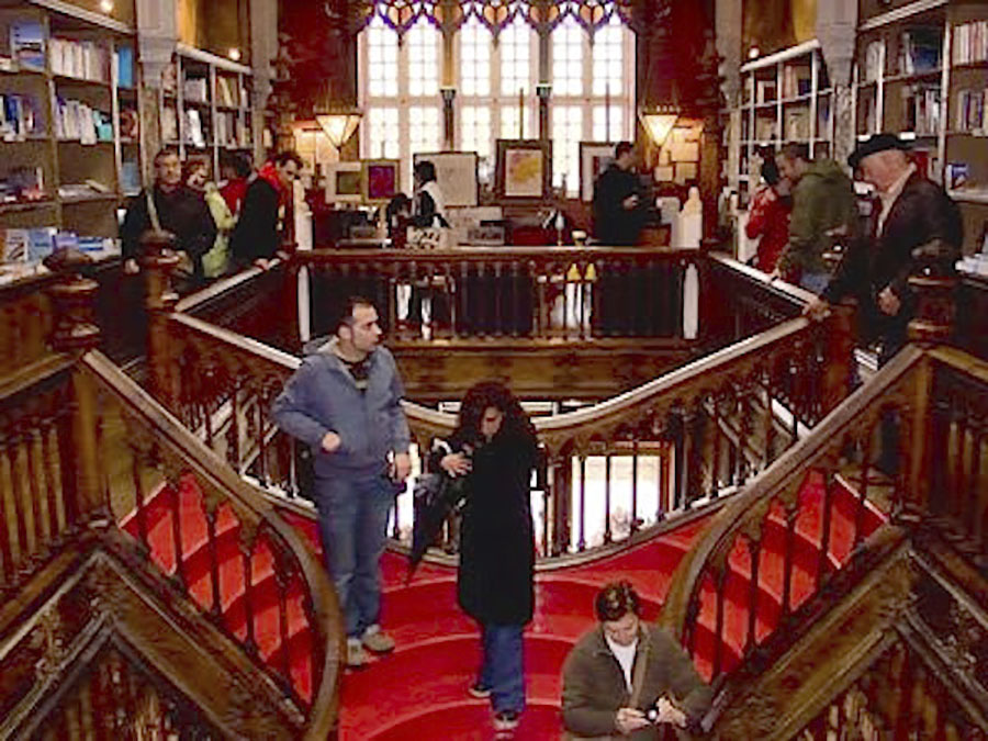 Al llegar a la Rua das Carmelitas, 144 vimos el edificio de la librería Lello e Irmão con una fachada neogótica del año 1906, pero lo realmente maravilloso fue entrar y comprobar su belleza interior. El escritor español Enrique Vila-Matas la consideró la librería más bonita del mundo y recientemente el periódico inglés “The Guardian” la ha considerado la tercera más bella, después de “Boekhandel” en Mastricht (Holanda) y de “El Ateneo” en Buenos Aires (Argentina).