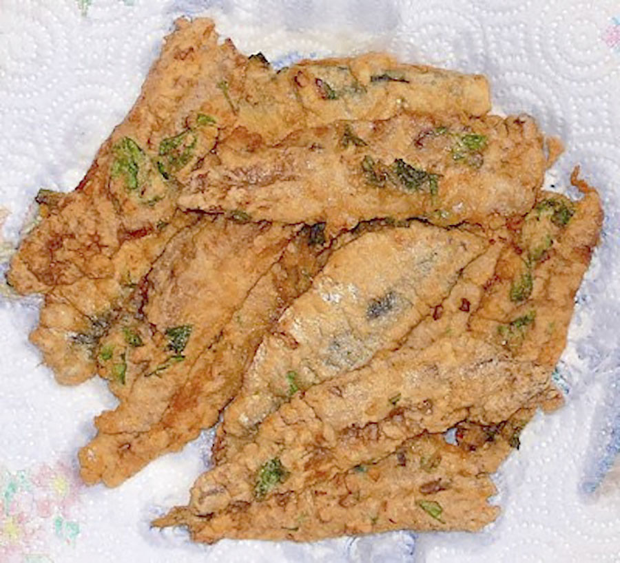 - Calentar aceite y empezar con el proceso que es enharinar cada lomo y pasarlos por la mezcla de huevo, ajo y perejil.