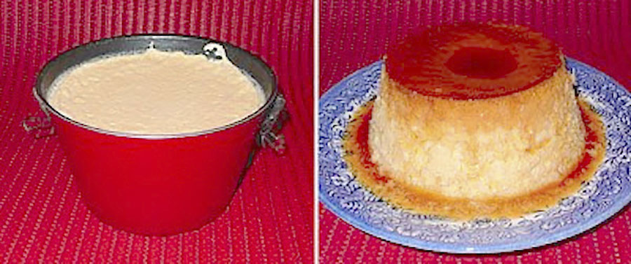 - Verter la mezcla en la flanera, previamente caramelizada, a través de un colador.