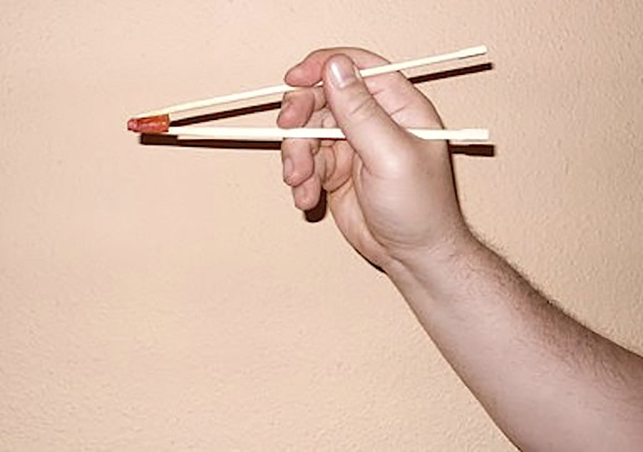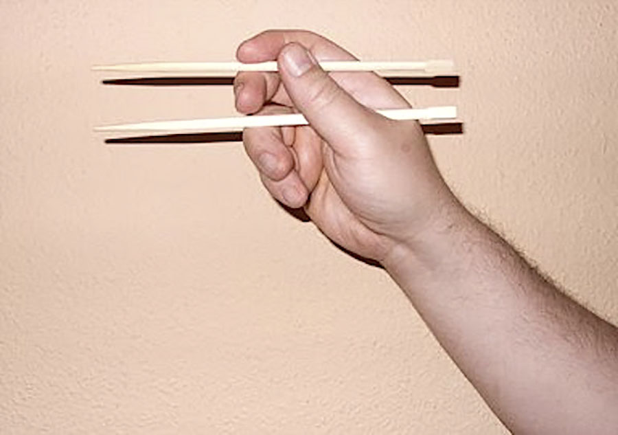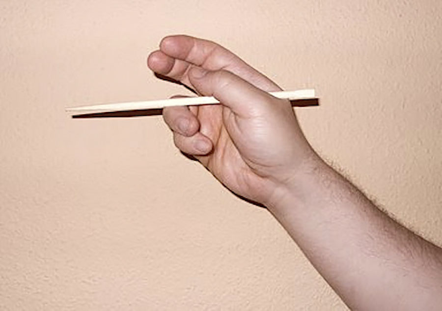 Este segundo palillo es el único que se moverá, como si de una pinza se tratara. Las puntas de los palillos deberán quedar al mismo nivel para poder coger los pequeños bocados de comida, arroz…