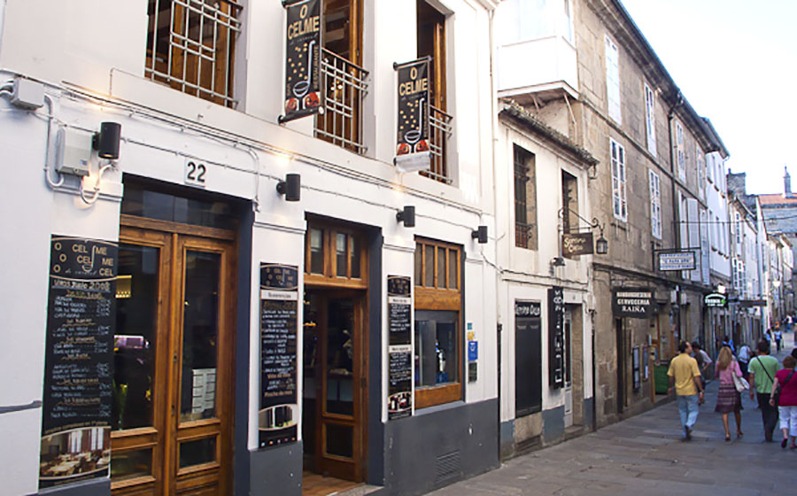 La Rúa da Raiña o calle de la Reina se encuentra entre las transitadas Rúa do Franco y Rúa do Vilar, en pleno centro compostelano y a dos pasos de la catedral. Particularme la Rúa do Franco es una calle que me agobia, gente transitando en todos los sentidos buscando un restaurante donde comer o tapear, amables dependientas ofreciéndote cada dos pasos un trozo de tarta de Santiago…, sin embargo en la cercana Rúa da Raiña se puede pasear y tapear con menos agobios, aunque todo depende del momento.