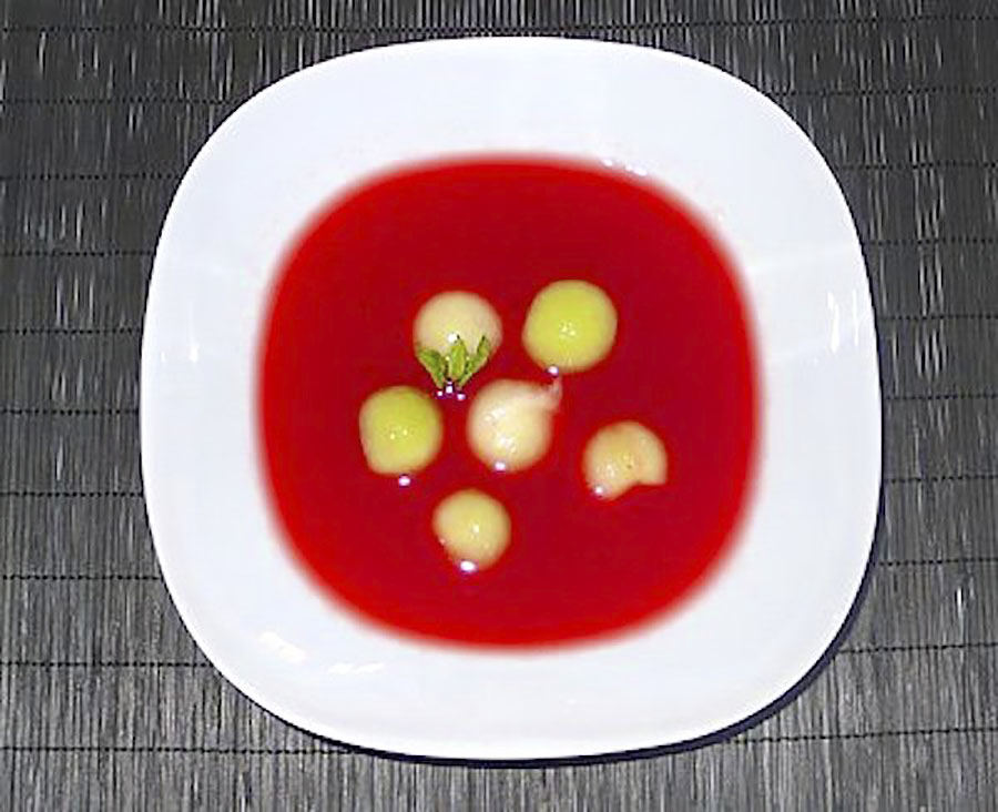 Cómo elaborar una receta de sopa fría de sandía, perfumada con hierbabuena, y bolitas de melón
