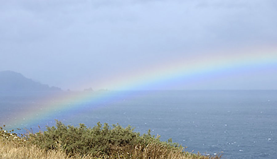Ese día decidimos subir a Estaca de Bares (A Coruña), la punta más septentrional de la península ibérica, justo donde se abrazan y separan el mar Cantábrico y el océano Atlántico. Nada más llegar pudimos contemplar el arco iris más completo y bonito que he visto en mi vida, un regalo para la vista. Apenas duró y no me dio tiempo a cambiar el teleobjetivo que llevaba montado en la cámara por un gran angular, para captarlo en toda su extensión.