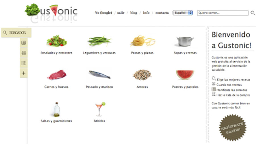 Gustonic es una aplicación web gratuita al servicio de la gestión de la alimentación saludable, que permite gestionar recetas, planificar menús y realizar listas de la compra.