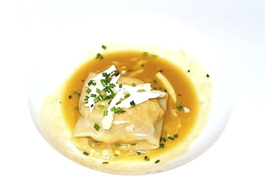 - Ravioli de pollo en pepitoria. Sublime, como me recordó al pollo en pepitoria de mi madre.