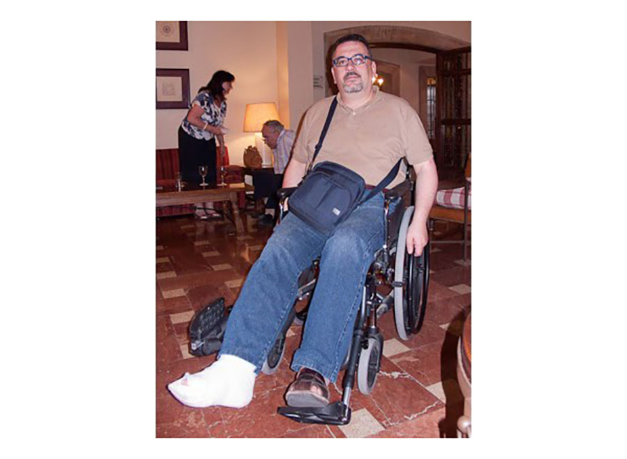 Estas vacaciones teníamos planeada una Ruta Gastronómica por Euskadi y La Rioja que, como siempre, iría acompañada de las correspondientes rutas a pie por la naturaleza y las visitas culturales a salas de exposiciones y museos. Desafortunadamente empezaron con mal pie -nunca mejor dicho- ya que tuve una caída -limpiando el coche- justo el día antes de irnos, así que después de toda una noche en urgencias salí con una férula en la pierna derecha, un par de muletas y una silla de ruedas.