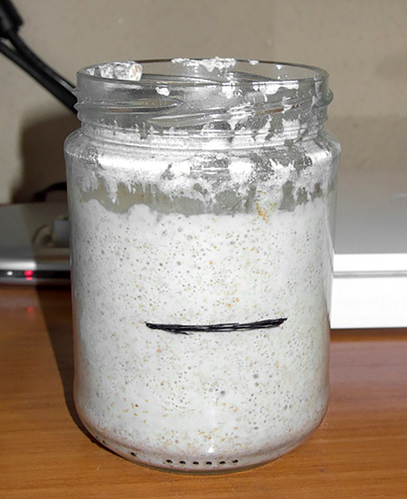 - Durante el resto de días habrá que seguir alimentando la masa con harina (integral y fuerza) y agua.