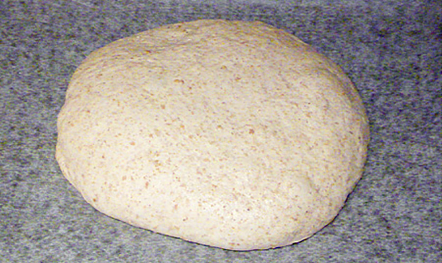 - Se quitan las pasas, se desechan unos 2/3 de la masa y se completa con harina blanca y agua.