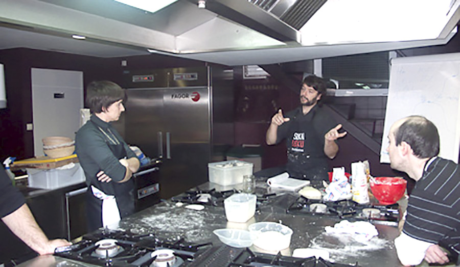 El lugar donde se realizó el taller fue en las instalaciones de Sukal Leku Fundazioa (Fundación Casa de la Cultura Gastronómica de Euskal Herria) en Villa Yeyette (Pº Zubiaurre, 84). Sukal Leku es una entidad para impulsar, promover y desarrollar el conocimiento y la práctica de la cultura gastronómica de Euskal Herria. Allí me encontré y pude saludar a David De Jorge Eceizabarrena, una persona a la que sigo desde hace tiempo en los diferentes espacios en los que escribe. Me gusta su estilo directo, sin pelos en la lengua y al que deseo mucho éxito, junto a Martín Berasategui, en Gourmandia Gastronomía (creación y gestión de contenidos, soportes gastronómicos, libros, producción TV…)