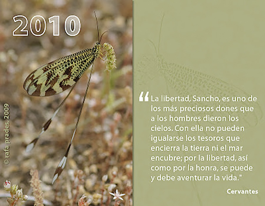 He preparado una pequeña tarjeta de felicitación con una de mis mejores fotos de este año, que por cierto no son muchas y se pueden contar con los dedos de una mano. La realicé en una KDD fotográfica del Comando Bellota del foro Caborian que organizó Xaicam en tierras de Extremadura, concretamente en los alrededores de Garrovillas de Alconétar (Cáceres) y según Antoniof es una Nemoptera bipennis Orden: Neuroptera Familia: Nemopteridae.