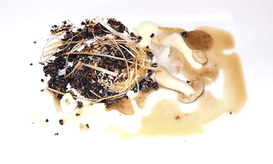 - Cerdo ibérico con patatas salteadas y almejas. Su particular versión del clásico Carne de Porco à Alentejana, donde la almeja iba dentro de una esferificación de cilantro.
