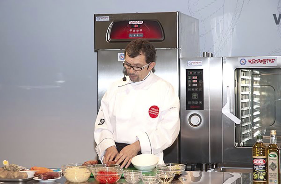 A las 11:30 empezó en la Sala Cunqueiro Cocina de montaña, del bosque a la despensa, en la que participó Carlos Parra -cocinero del Hotel Restaurante El Ciervo– en representación de un movimiento culinario organizado alrededor de la Asociación de Hostelería y Turismo de Trevinca – A Veiga (Trevihost). La cocina se basa en los mejores productos que ofrece la sierra en cada estación, siendo ésta una despensa rica y variada.
