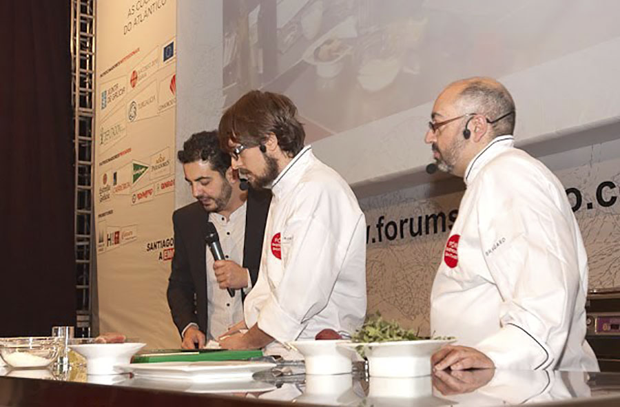 Para terminar, el polifacético chef Chakall (chef ejecutivo del restaurante lisboeta Quinta dos Frades) acompañado de la pulpeira Aurora Baranda, realizó un espectáculo de cocina y música al que no pude quedarme, ya que perdía el autobús de regreso a Santiago.