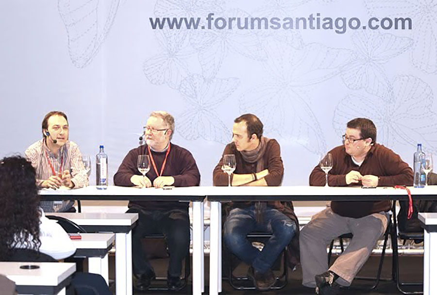 El encuentro terminó con la tertulia Bloggers y cocineros con Miguel Vila (Colineta), Marcos Morán (Casa Gerardo de Prendes), Pedro Martino (L’Alezna de Oviedo) y Álvaro Cernada director comercial de verema.com que al final consiguió llegar a Santiago de Compostela.