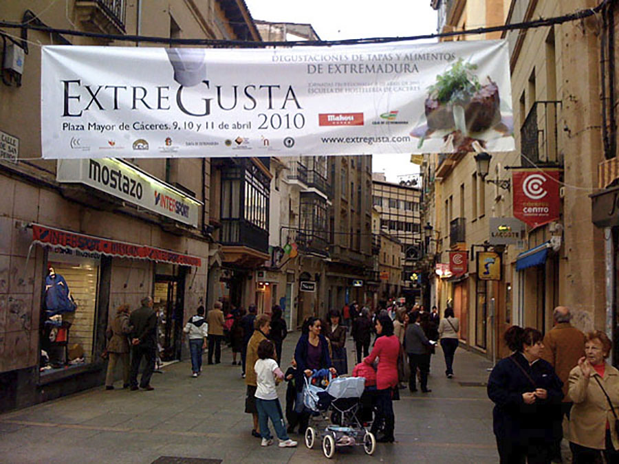 Estrenando el nombre de Extregusta, la Feria Gastronómica de Cáceres celebra este fin de semana (del día 9 al 11 de abril de 2010) su V edición. Al igual que el pasado año, estará ubicada en el marco incomparable de la Plaza Mayor. Esperemos que el tiempo vuelva a acompañar y que cacereños y turistas disfruten juntos de esta feria al aire libre.