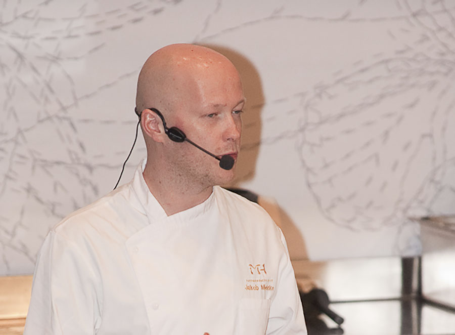 La primera ponencia en el auditorio fue la de Jakob Mielcke del restaurante danés Mielcke & Hurtigkarl, Jakob preparó cuatro platos de impecable factura.