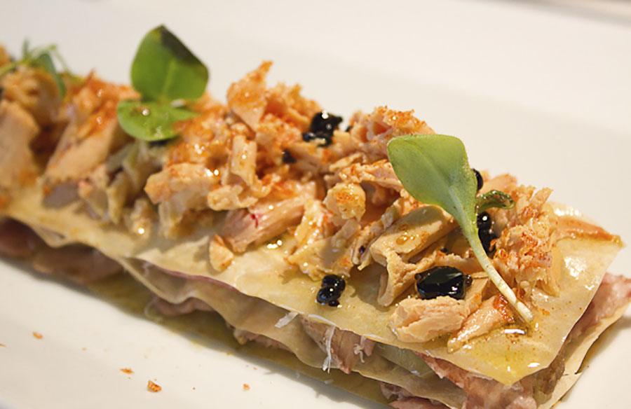 El menú empezó con unos platos de jamón ibérico, símbolo de nuestra gastronomía y del que el gran Nico Jiménez es embajador como maestro cortador y dio una clase magistral, pocas horas antes en el curso.