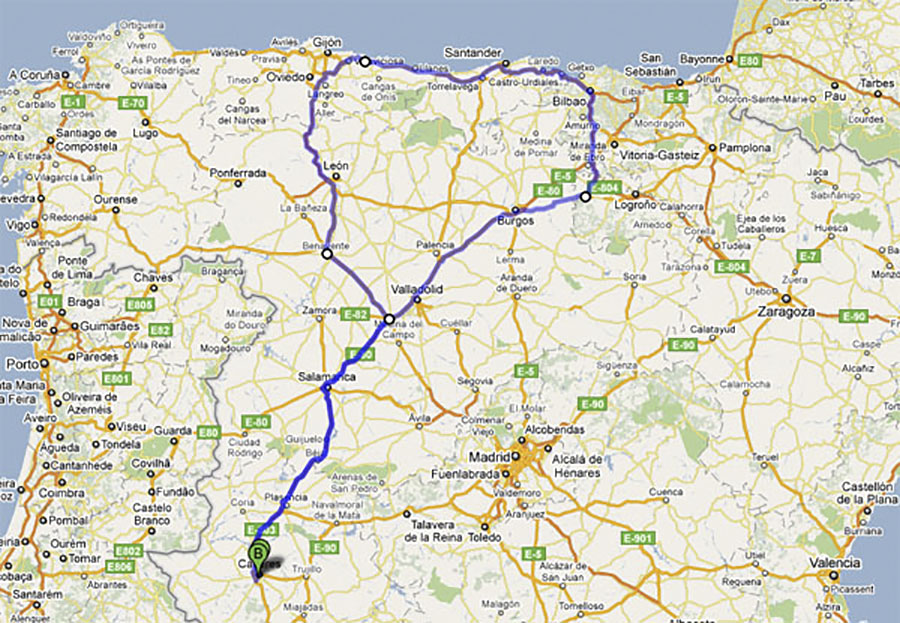 Cáceres > Benavente > Asturias > Ezcaray > Tordesillas > Cáceres