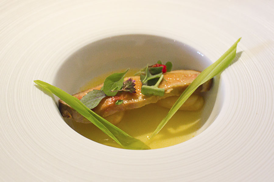 Perdido en la montaña se encuentra este restaurante donde Nacho Manzano nos deleitó con un excelente menú (objeto de otra entrada). Merece la pena la excursión, bien se venga por Arriondas o desde el norte, pasando por el mirador de El Fitu con sus impresionantes vistas. Elegimos el menú gastronómico para conocer las nuevas creaciones de la cocina de Nacho y dejamos para otra visita a Asturias su menú tradicional con el clásico pitu de caleya entre otros platos. Creo recordar que también había otro menú con algunos de los platos de su trayectoria. Un menú largo de ocho platos y dos postres elaborados con total maestría y con referencias a la tierra que empezamos con un delicioso aperitivo de mantequilla de cítricos. El vino con el acompañamos la comida fue un excelente tinto Manolo de la Osa 2004, que ya habíamos catado anteriormente en el restaurante Locum de Toledo.