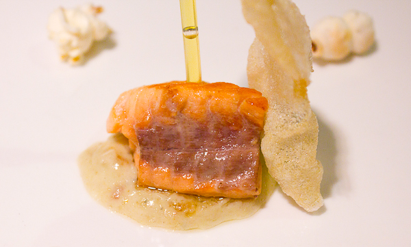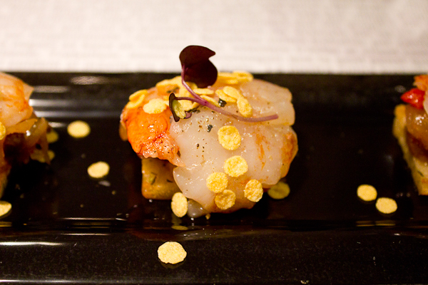 Después me fui con Txaber a cenar y me llevó a 20 à la Rambla, un local con varios espacios, entre ellos el gastro-bar, un lugar moderno, funcional y con un ambiente muy agradable. A los mandos se encuentra Juan Diego Sánchez (Juandi) que, entre otros, ha realizado un stage con los hermanos Roca.