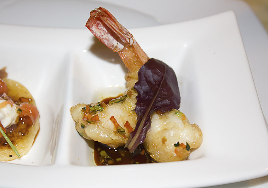 En esta ocasión nos decidimos por varios platos de su carta, en lugar del menú degustación. Empezamos por unos aperitivos que posteriormente formarían parte del menú navideño de la Taberna Encantada, que nos sirvieron para que les diéramos nuestra opinión: