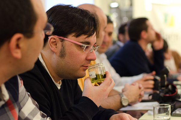 Después de las presentaciones y la bienvenida oficial empezó la cata de aceites. Fue Emilio Tiscar, secretario del Consejo Regulador de la Denominación de Origen Sierra de Cazorla quien previamente nos explicó en una charla muy interesante aspectos sobre el mundo que rodea el aceite de oliva: categorías, mitos, propiedades beneficiosas, aspectos positivos (frutado, amargo y picante) y negativos (atrojado, mohoso, avinado, rancio…) a tener en cuenta en las catas, como se realiza un panel de cata…