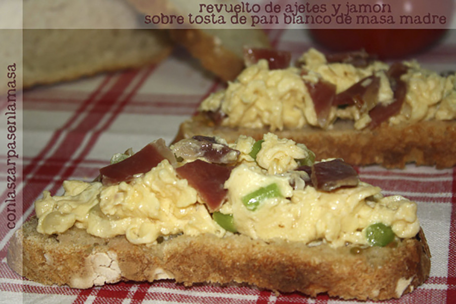 Puedes ver la entrada completa en su blog: Revuelto de ajetes y jamón sobre tosta de pan blanco de masa madre.