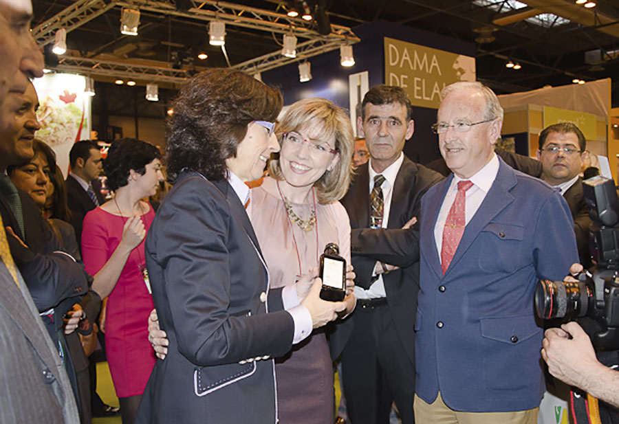 Rosa Aguilar, Ministra de Medio Ambiente y Medio Rural y Marítimo, inauguró el Salón e hizo una visita por los diferentes pabellones. Tuve la oportunidad de fotografiarla mientras visitaba el stand de la Diputación de Jaén, allí la recibió mi amiga Marian Velasco (Vicepresidenta de Turismo, Desarrollo Local, Sostenibilidad, Cultura y Deportes). Marian entregó en mano, a la Ministra, una botella de AOVE Melgarejo Gourmet (monovarietal picual de la DOP Sierra de Mágina), galardonado por el MARM con el premio Alimentos de España al mejor Aceite de Oliva Virgen Extra. Campaña 2009-2010 en la categoría de Frutados Verdes Dulces. También se hizo entrega a la Ministra de un lote con los 7 restantes aceites de oliva virgen extra que forman la promoción de la Diputación: Jaén Selección 2011 realizada por expertos gastronómicos y cocineros presididos por Rafael García Santos (Lo Mejor de la Gastronomía). Un aceite que pude probar en el Restaurante Zeitúm de Úbeda (Jaén) durante las Jornadas Gastronómicas en el Renacimiento.