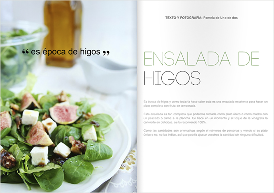 Sus editoras son unas grandes blogueras: Beatriz Cano de Tu eres el chef y Silvia Palma (Trotamundos) de Food and Cook. Una revista muy cuidada en su maquetación y con unas fotografías excelentes, en la que colaboran mensualmente varias blogueras en torno a una propuesta gastronómica mensual.