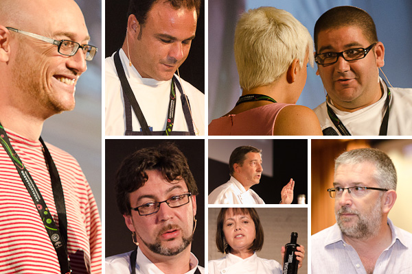 Pasaron grandes cocineros y gente relacionada con el mundo de la gastronomía nacional: Joan y Josep Roca, Quique Dacosta, Paco Roncero, Paco Morales, María José San Román, Ángel León… Otros más desconocidos para el público en general como el panadero Fidel Pernia (al que conocí en Girona), Juan Valdés… Cocineros que llenaron la sala con aromas de otras culturas gastronómicas como el marroquí Mohamed Fedal, el griego Christoforos Peskias o el italiano Carlo Cracco. La clausura del congreso la realizó Dani García, que asombró al auditorio con algunas de sus nuevas creaciones como unos gusanos de seda, la croqueta rota, el tablero de ajedres a base de piezas de chocolate, yoghurt de foie… que se prepararon en directo.