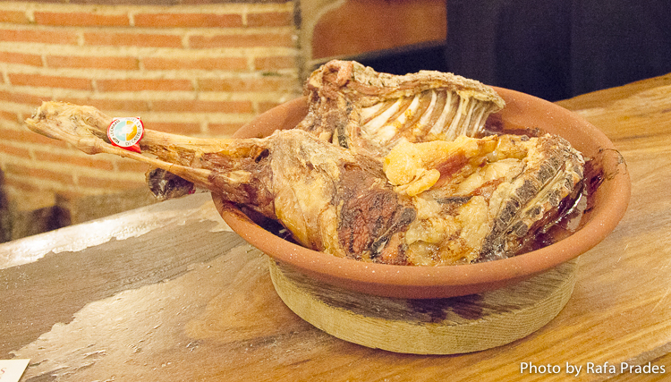 Como colaborador de Cocina.es fui invitado a estas Jornadas Gastronómicas en dos de los diez asadores que participan. Por la mañana un menú tradicional en el Mesón el Cordero, donde no podía faltar el lechazo asado en horno de leña. En el menú también estaban presentes algunos productos de la zona, como la morcilla arandina, variedad de la conocida morcilla de Burgos que se diferencia por su doble cocción que hace que “repita” menos y el uso de especias como el comino, la pimienta negra y el toque de canela. La crujiente y refrescante lechuga de Medina, todo un descubrimiento, acompañamiento perfecto del lechazo. Esta lechuga, de la variedad batavia, se cultiva en la comarca de Las Merindades, al norte de la provincia de Burgos. También fue protagonista en la mesa la torta de Aranda, un pan redondo y plano con hoyuelos en la superficie y de color dorado debido al aceite que se le unta por la superficie antes de entrar a hornear.