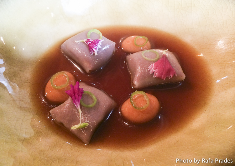 Para hacer unos raviolis de alubias de Tolosa hay que saber preparar unas buenas alubias guisadas al modo tradicional, como hace Diego Guerrero en su restaurante DSTAgE.