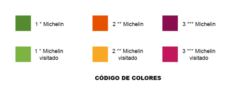 Los restaurantes con alguna estrella Michelin están también diferenciados visualmente de acuerdo al siguiente código de colores.