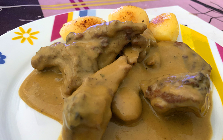 El último ingrediente es la cena. En la mesa, entre las varias viandas, destacaba esta receta de guiso de conejo que he retocado ligeramente ya que mantiene su esencia original.