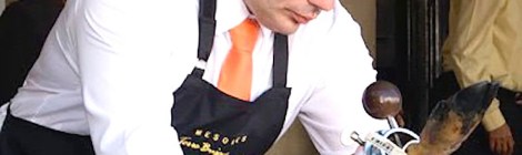 3º concurso regional de cortadores de jamón celebrado en Cáceres [2008]. La Plaza Mayor fue el escenario de este concurso organizado por el restaurador Rafael Arnáiz.