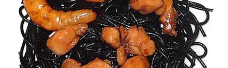 Espaguetis “al nero di seppia” con pollo y langostinos [receta]