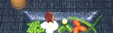 Indicaciones para elaborar una deliciosa menestra de verduras con su chupito al aroma de ibérico.